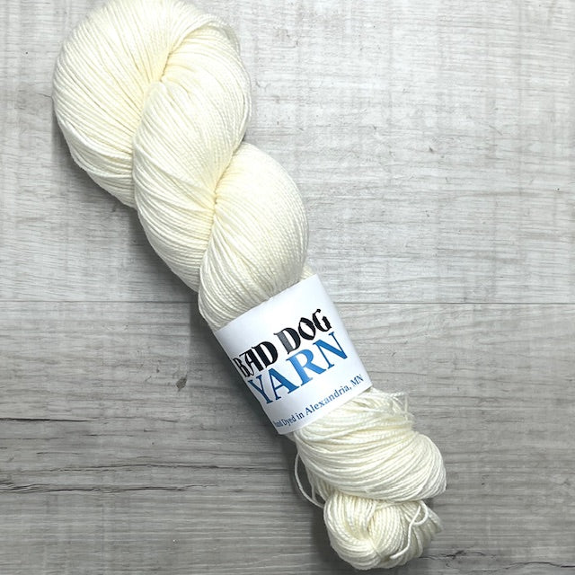 Bad Dog Yarns, Fingering Weight, 80% Superwash Merino/20% Nylon, 437 yards per skein Dyed in Alexandria, MN